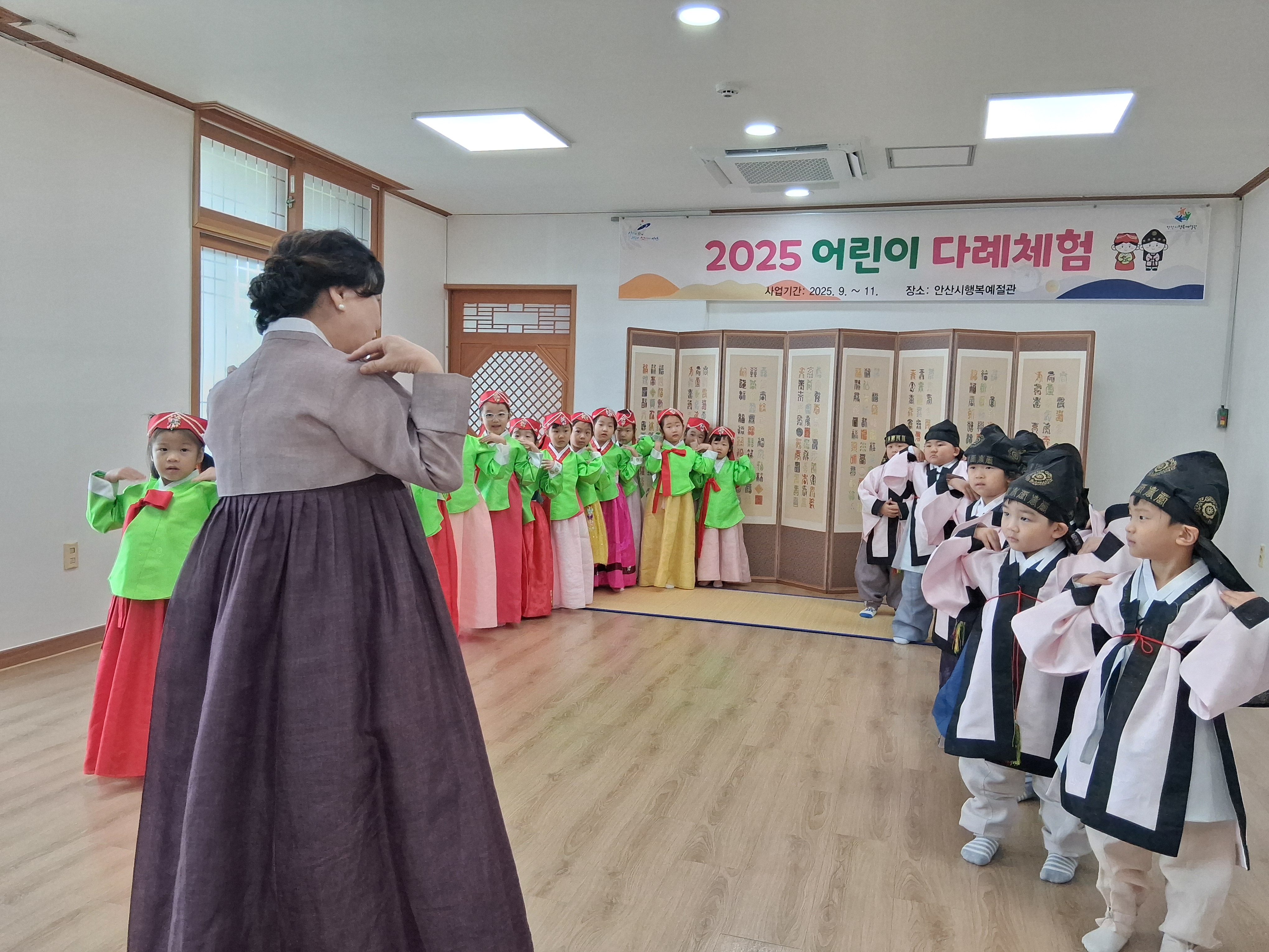 2025년 10월 2일, 어린이다례체험교육 프로그램으로 한복 체험, 배례법, 차(茶)예절 체험을 진행하였다.