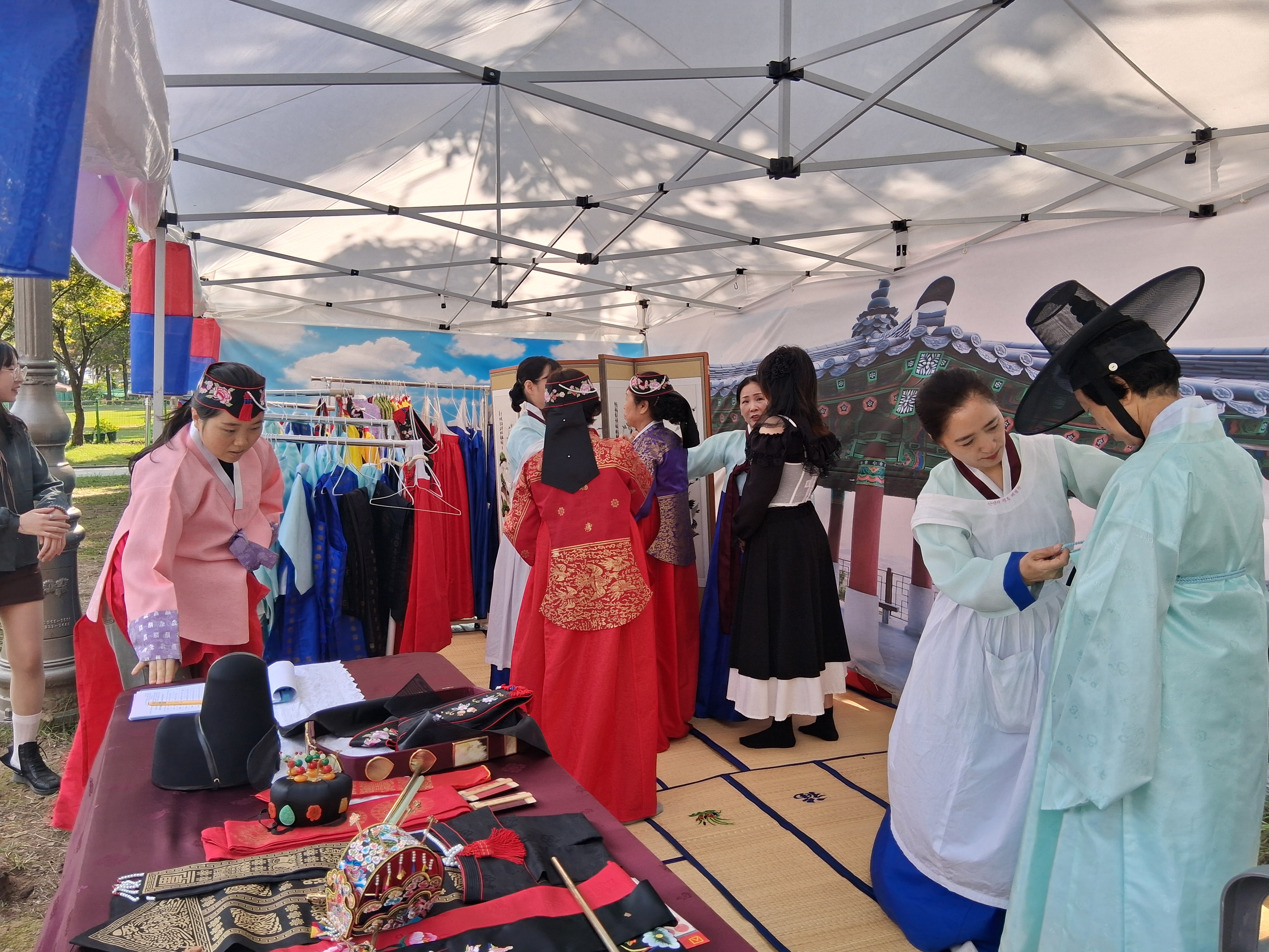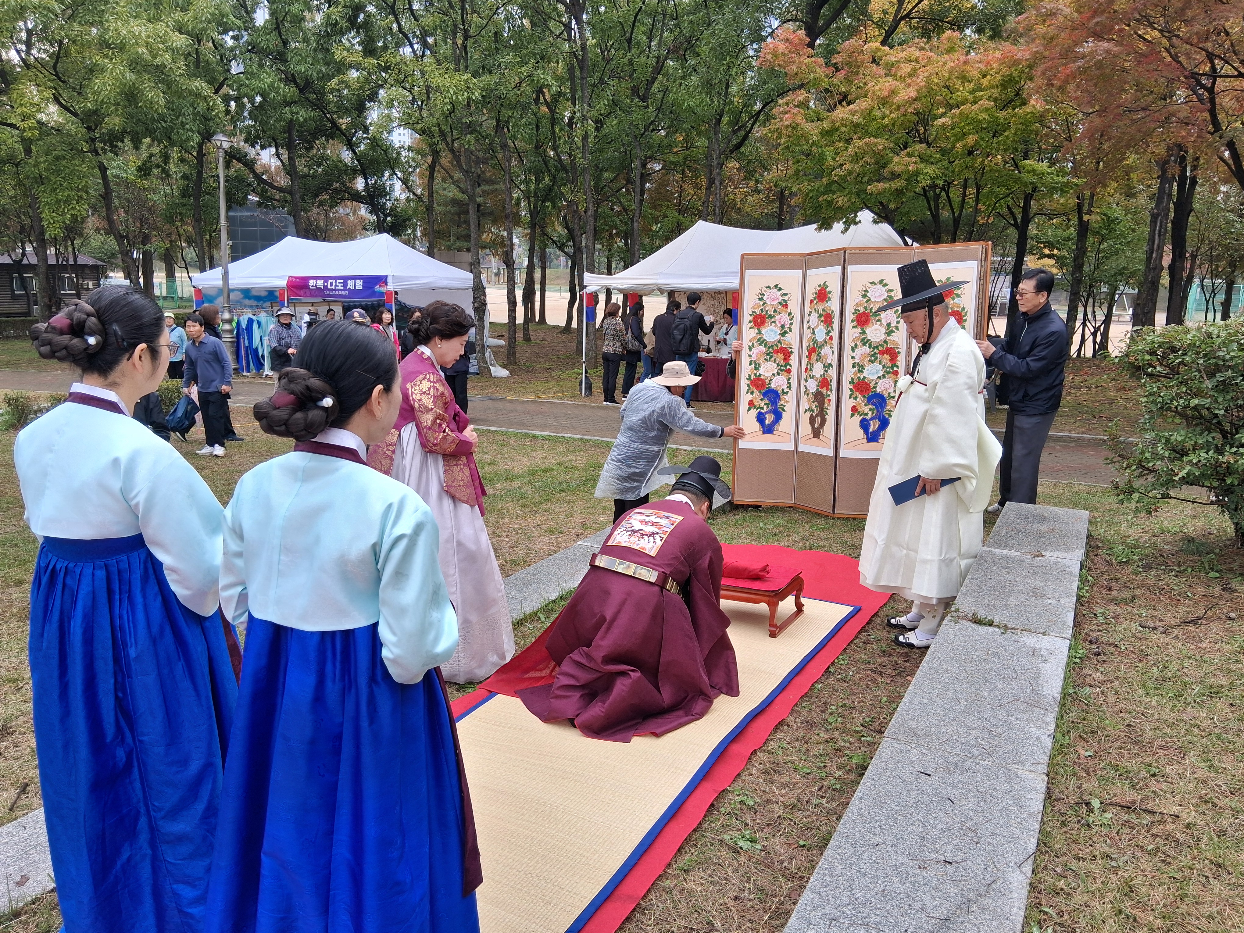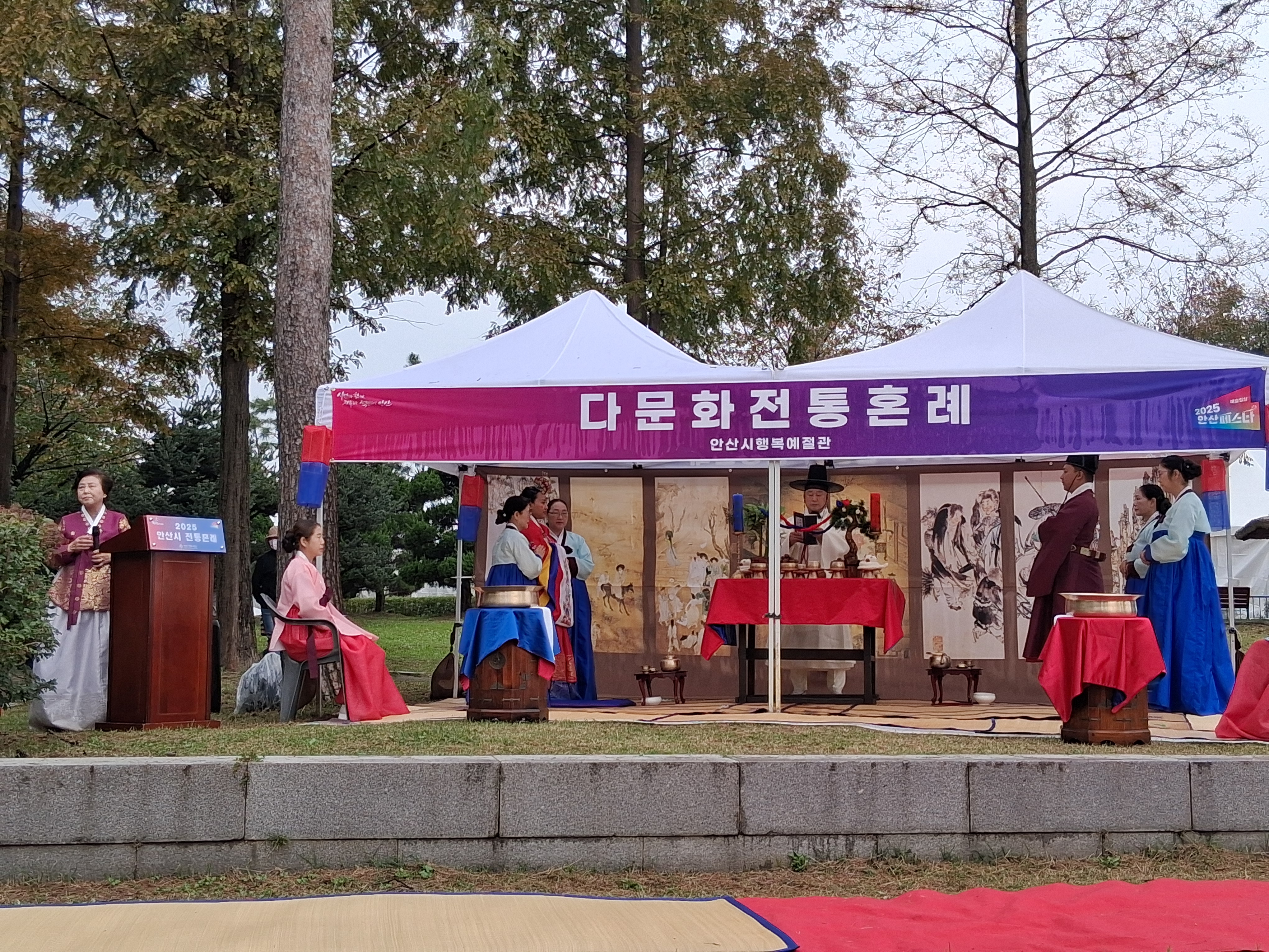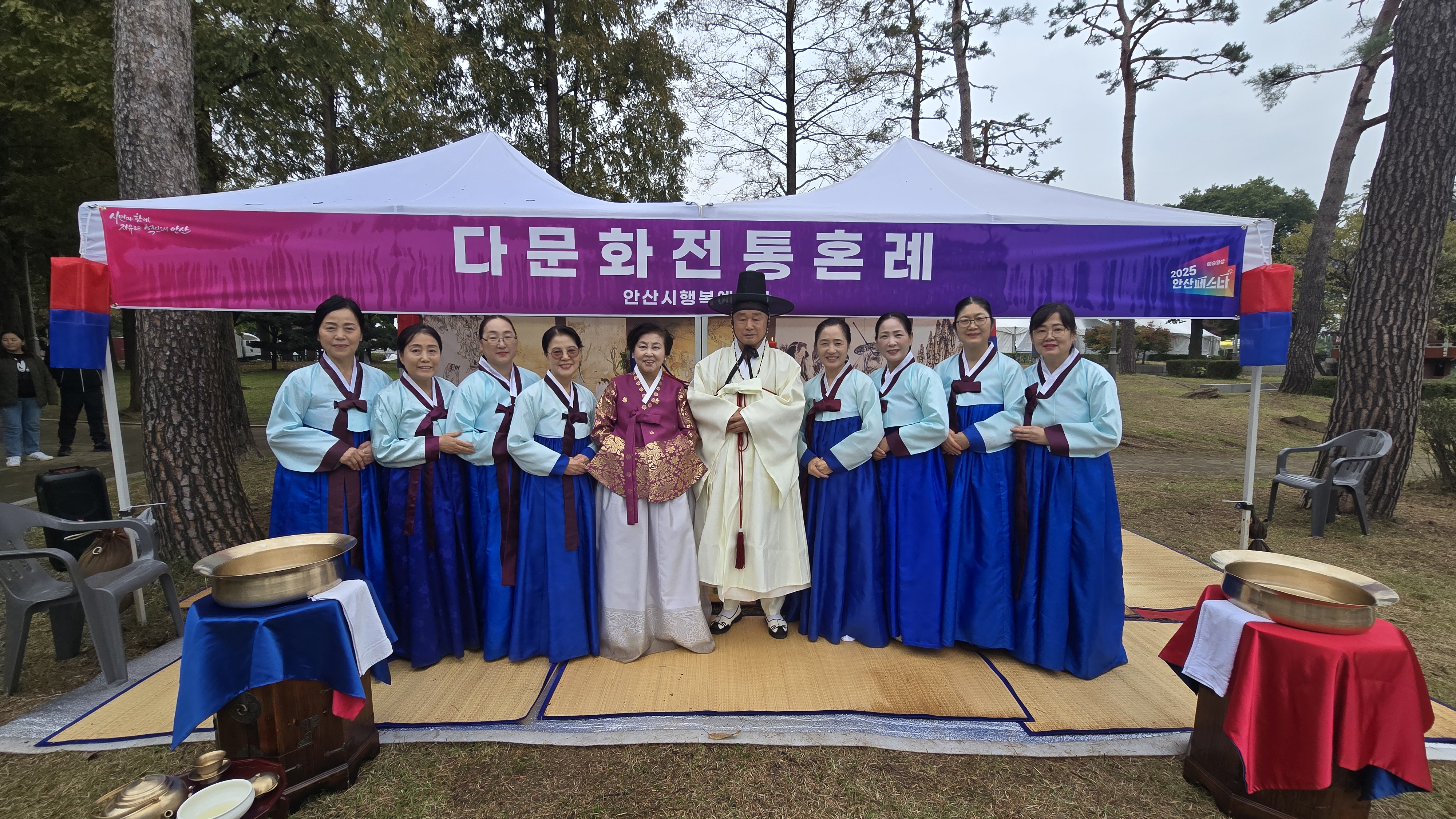 2025년 10월 24일부터 26일까지 3일간, 화랑유원지 내 단원각 앞에서 ‘안산시 페스타 2025’ 부스를 운영하엿다. 이번 부스에서는 한복 체험과 다도 체험 프로그램이 진행되었으며, 특히 10월 26일에는 다문화 가정 1쌍의 전통 혼례식이 뜻깊게 열렸다. 사랑의 손길로 봉사해주신 모든 분들의 따뜻한 참여와 협조 덕분에, 행사를 안전하고 성공적으로 마무리할 수 있었다.
