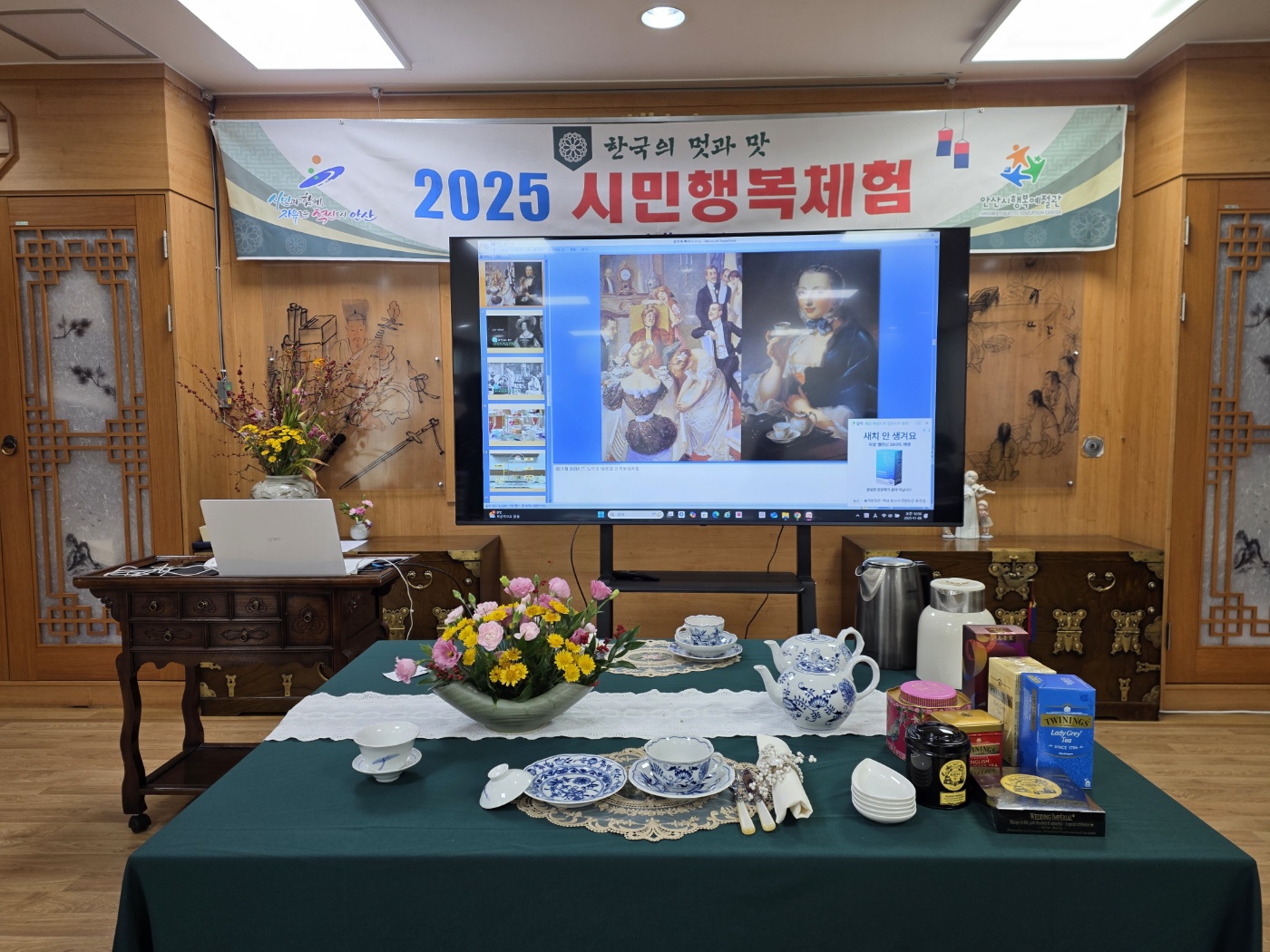 시민행복체험 – 홍차 이야기 2025년 10월 6일(목), ‘홍차의 역사’와 ‘티백 우리기’에 대해 배우는 뜻 깊은 시간을 가졌다. 세계 각국의 홍차 문화를 함께 배우고 체험하며, 서로를 존중하고 배려하는 마음으로 즐겁고 행복한 시간을 보냈다.